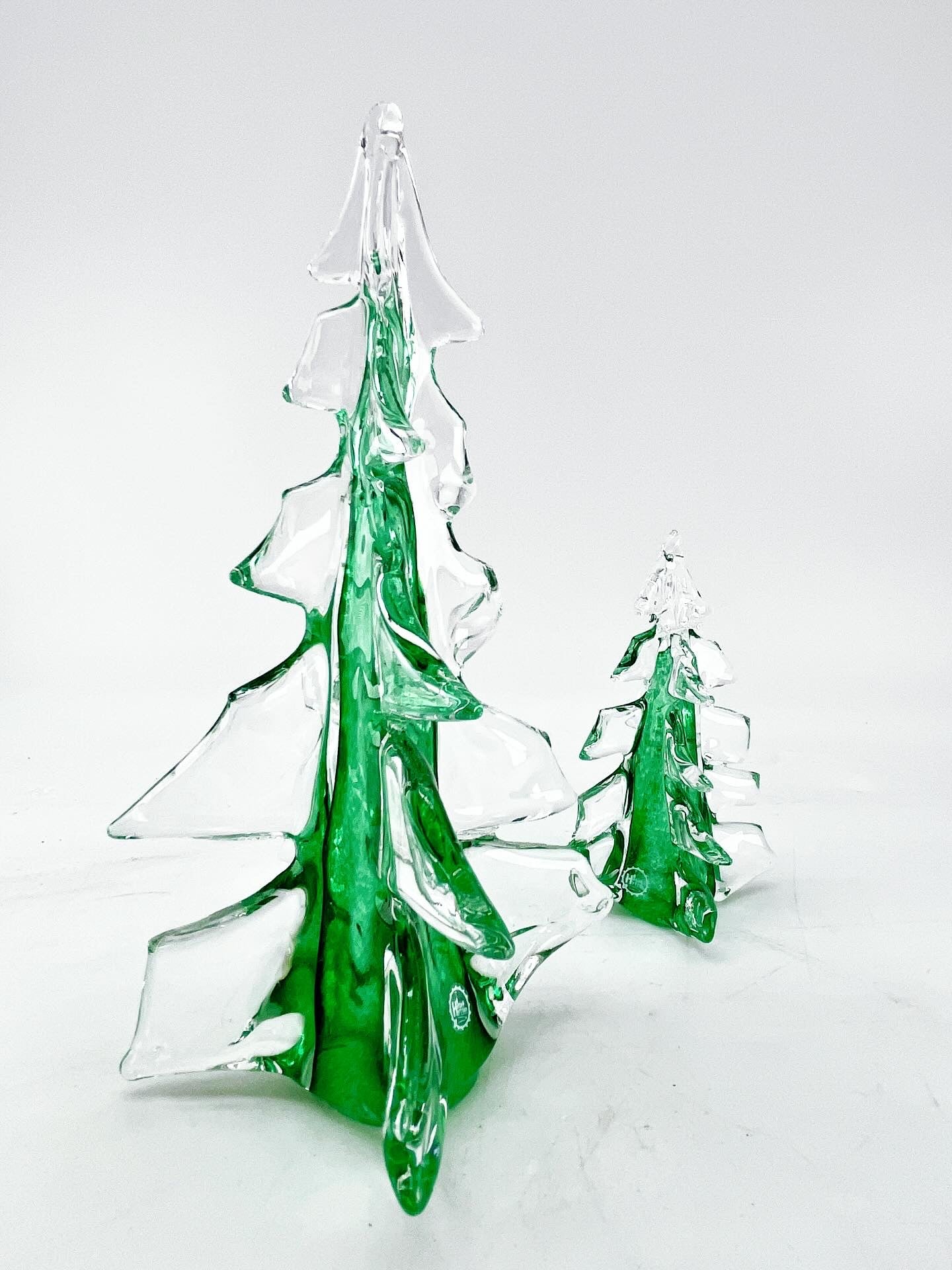 Ett handskulpterat skoglig produkt med variationer. Den stora granen är ca 21cm och den mindre 12cm